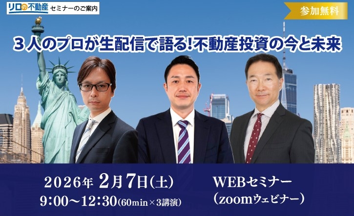 リロの不動産WEBセミナー『3人のプロが生配信で語る!不動産投資の今と未来』開催のお知らせです。